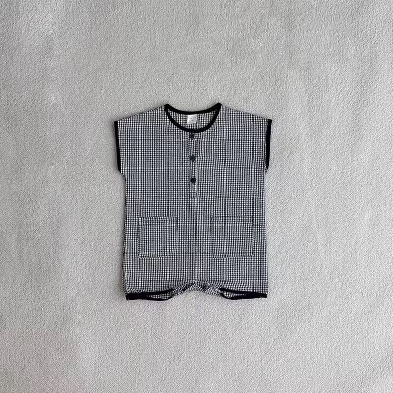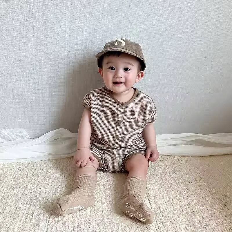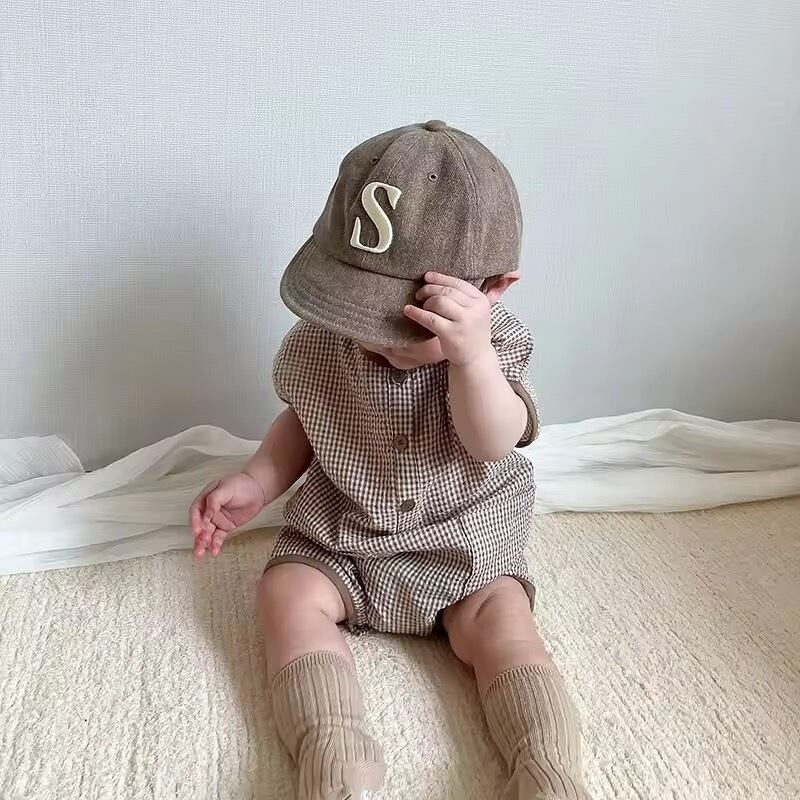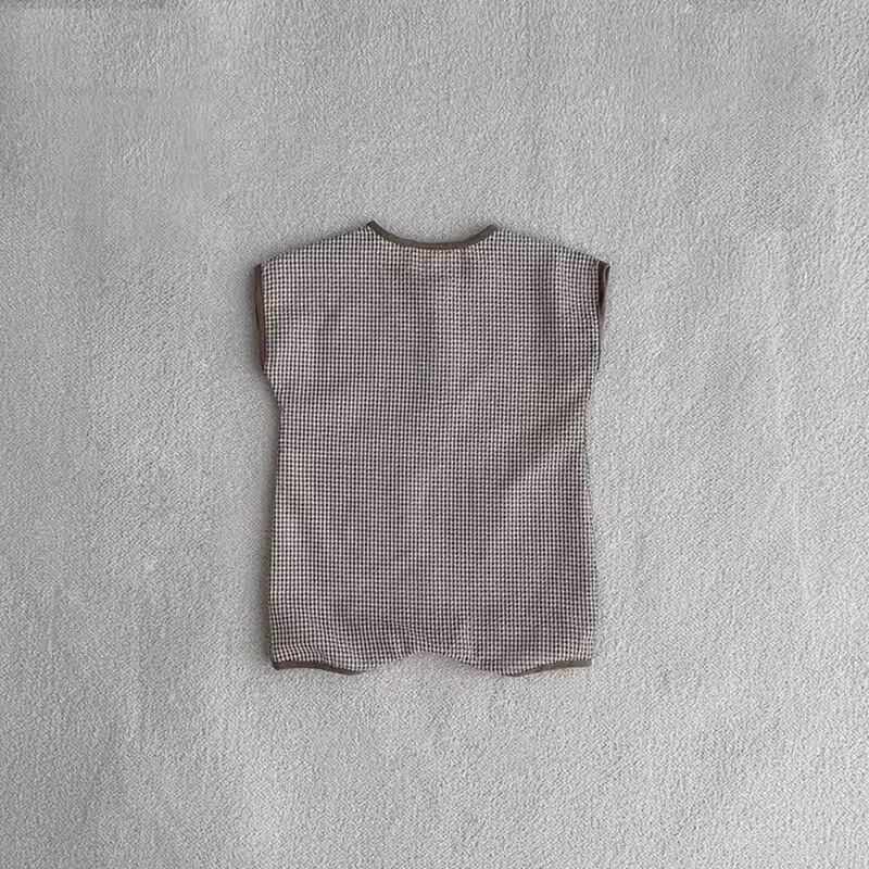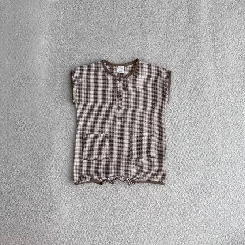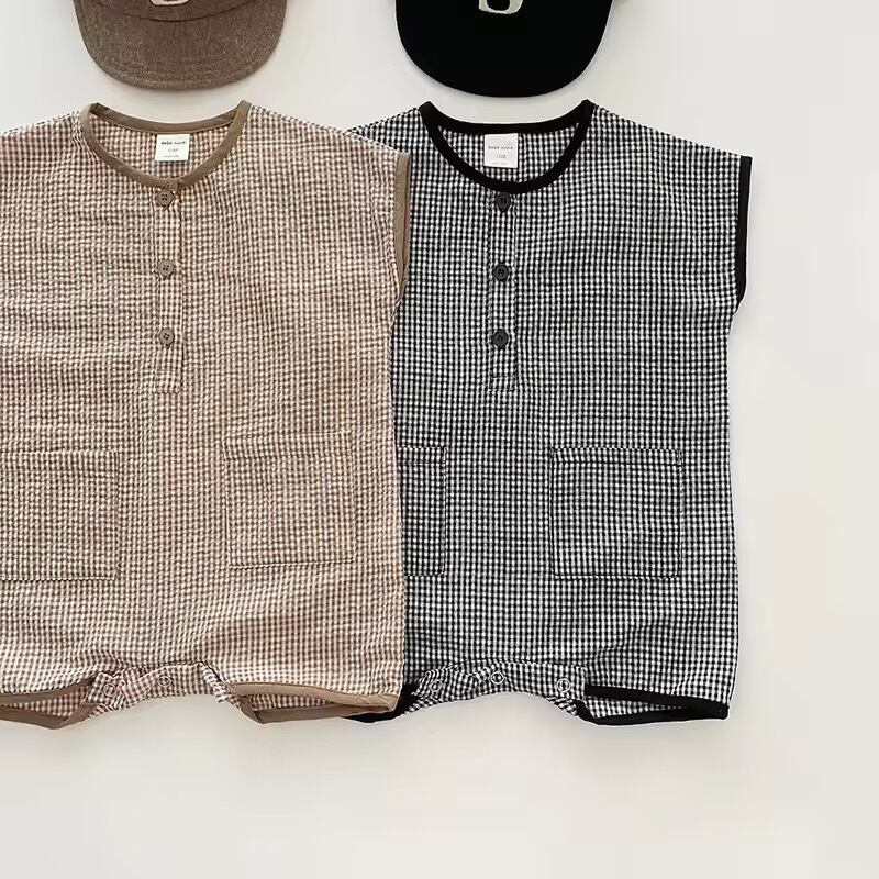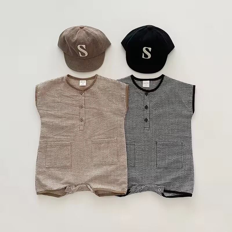 コットンチェック半袖ロンパース