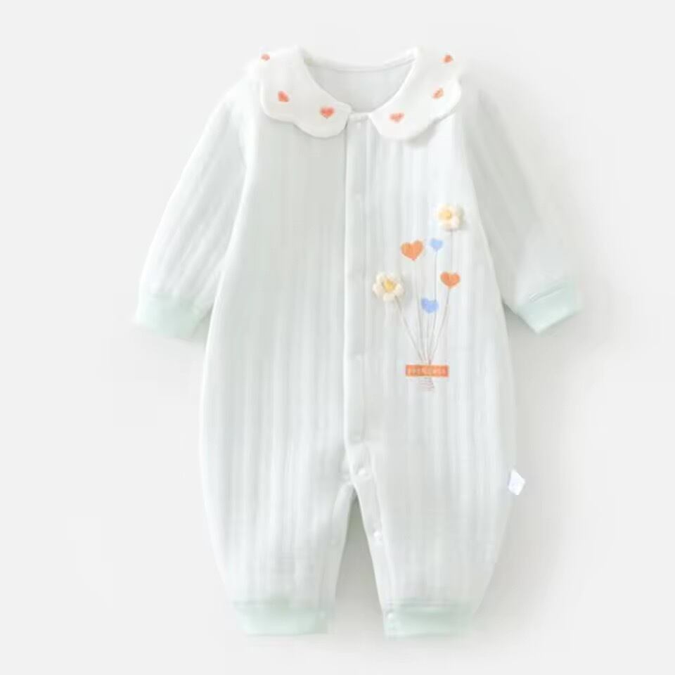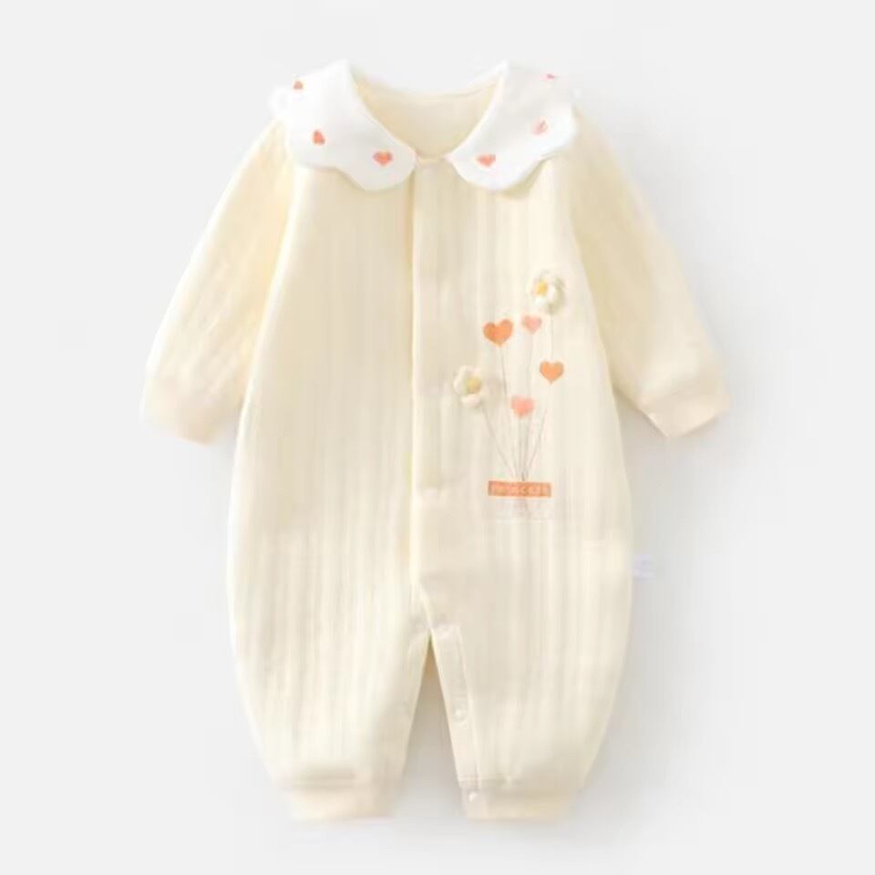 ハート刺繍カラー長袖ロンパース