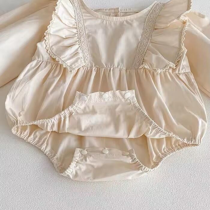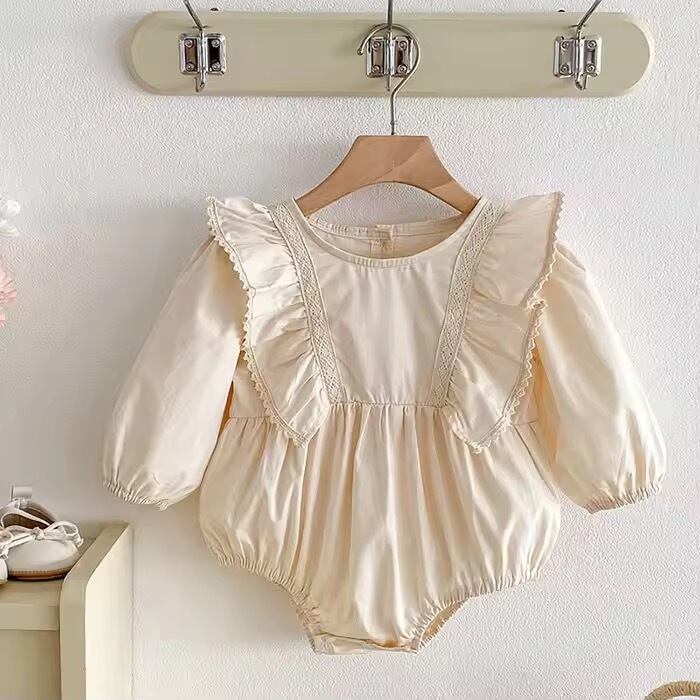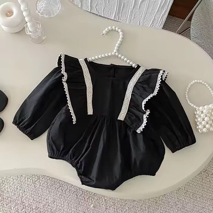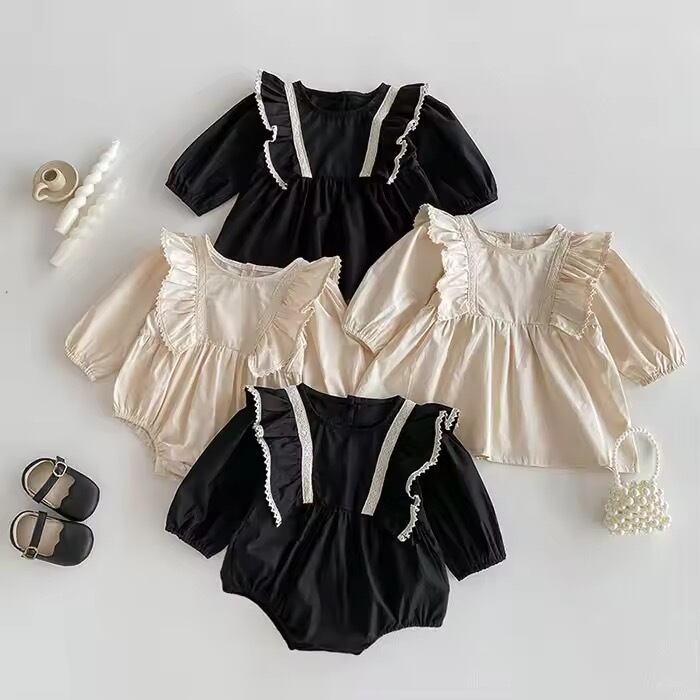 【姉妹お揃い】肩フリルレースボディスーツロンパース
