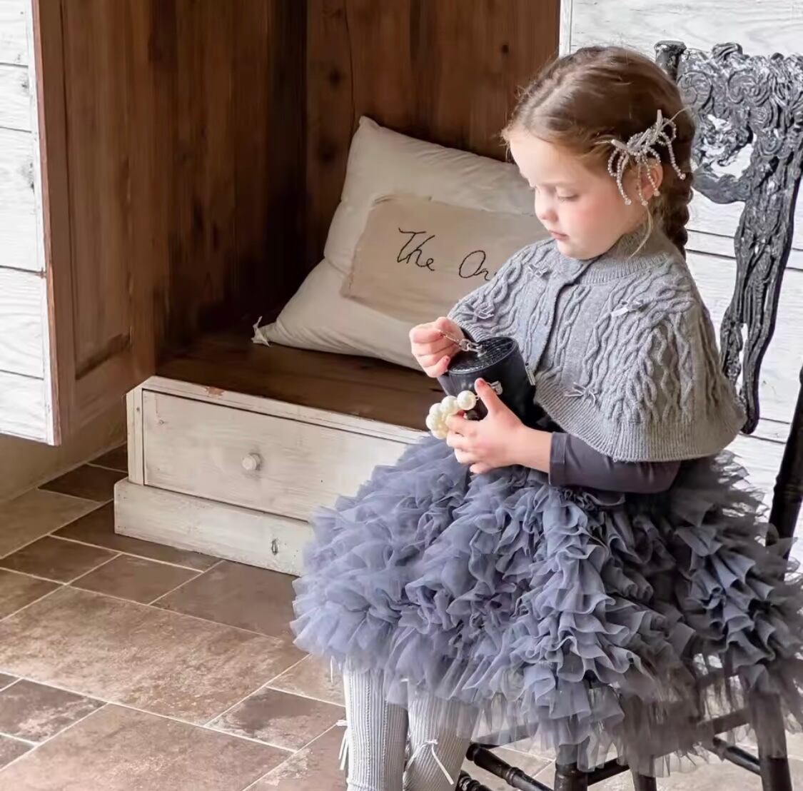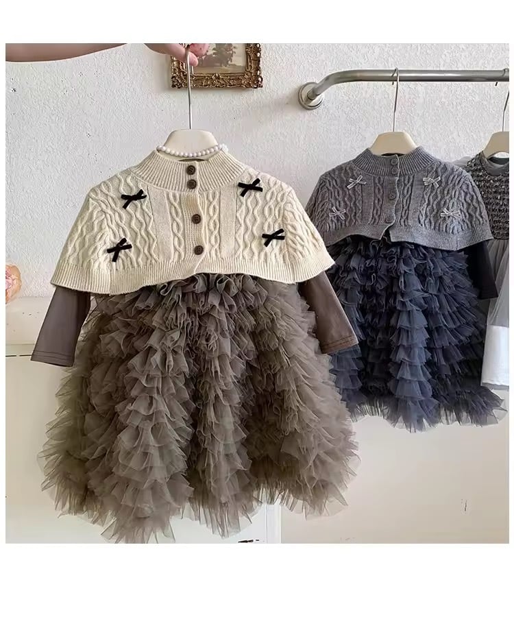 ニットショール付きチュールドレス