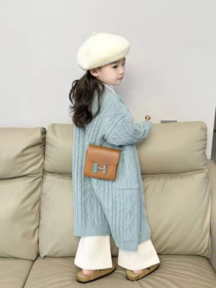 ロングブルーニットカーディガン