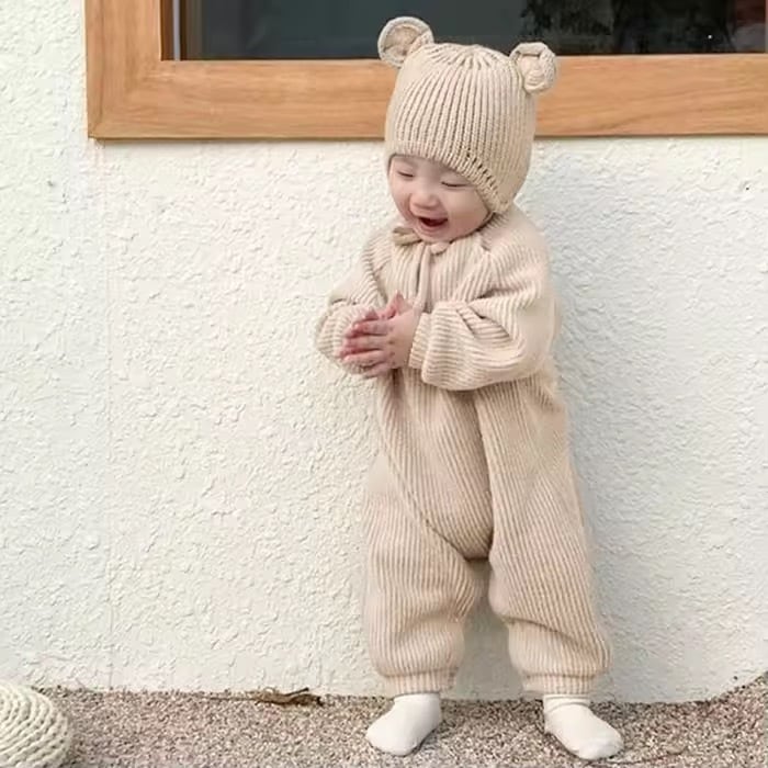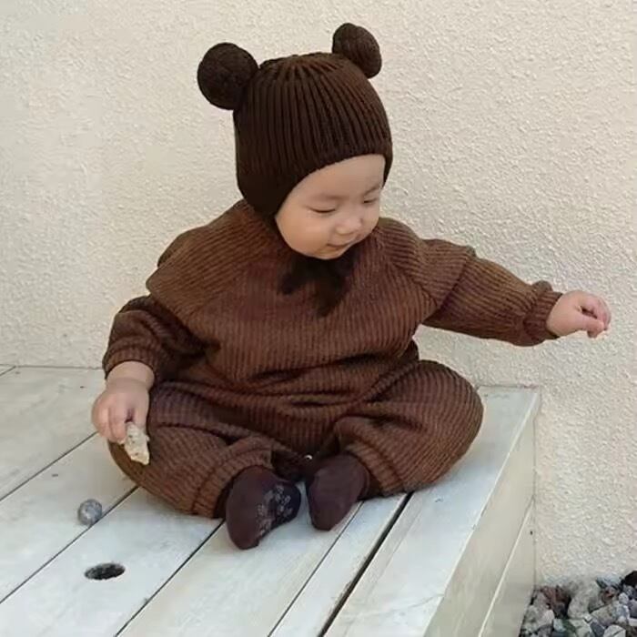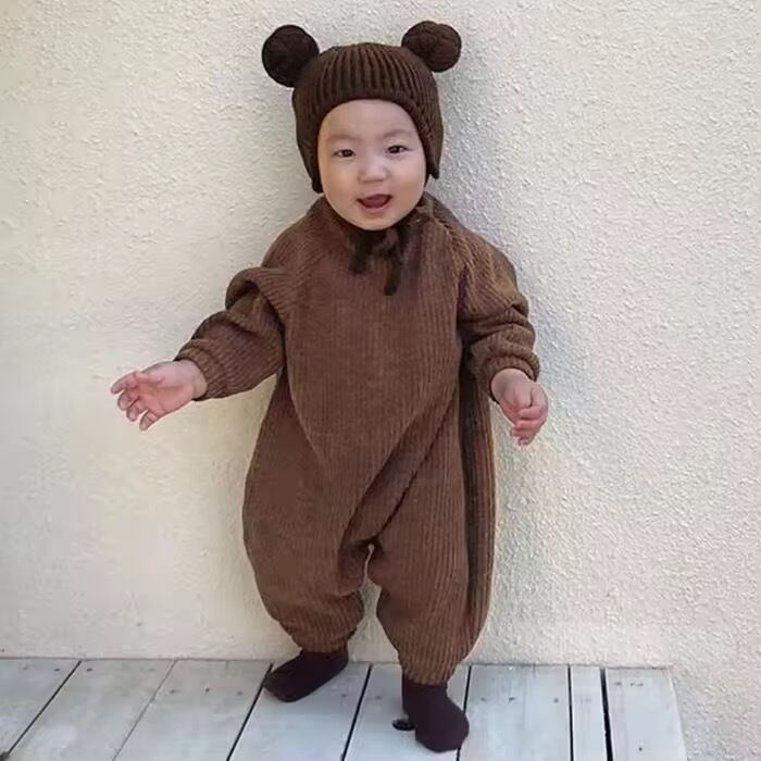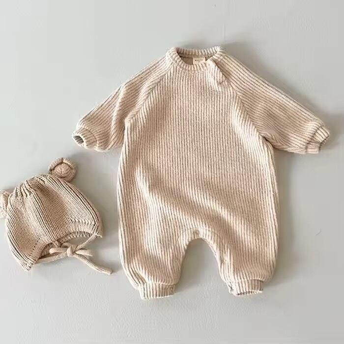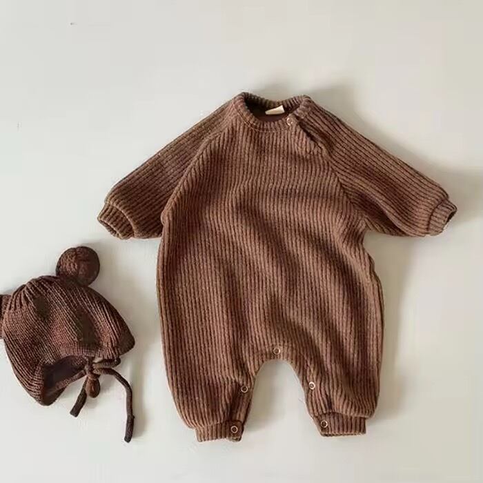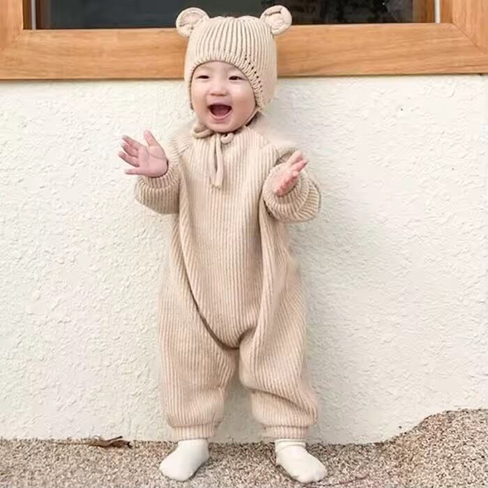 くまさんロンパース 帽子付き