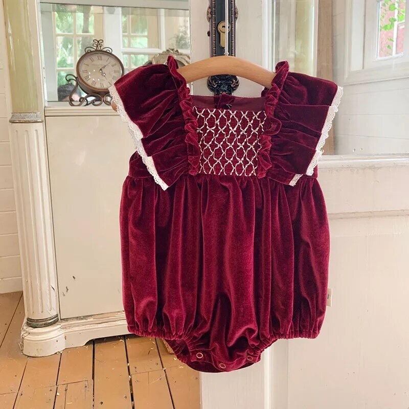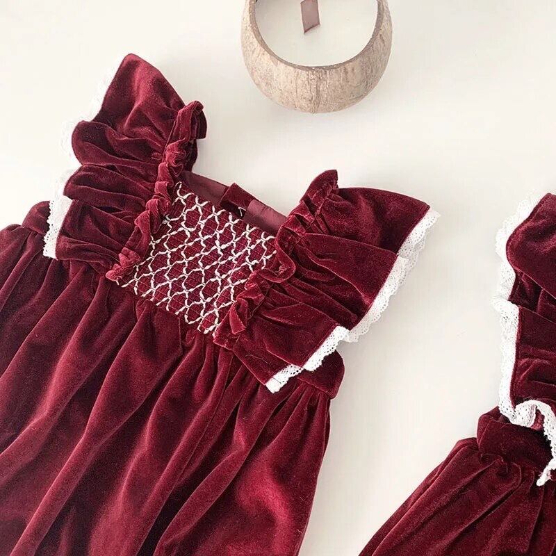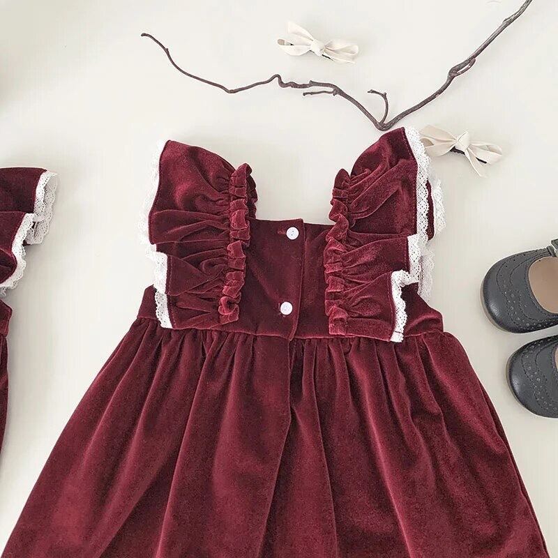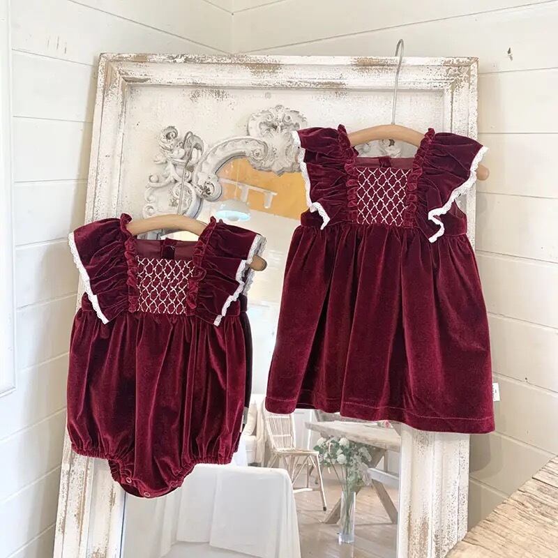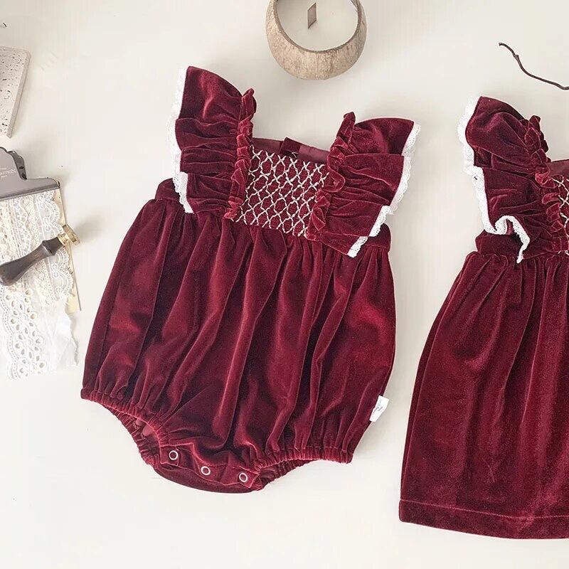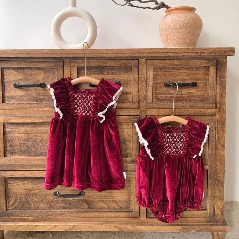 【姉妹お揃い】ベルベットワンピース&ロンパース