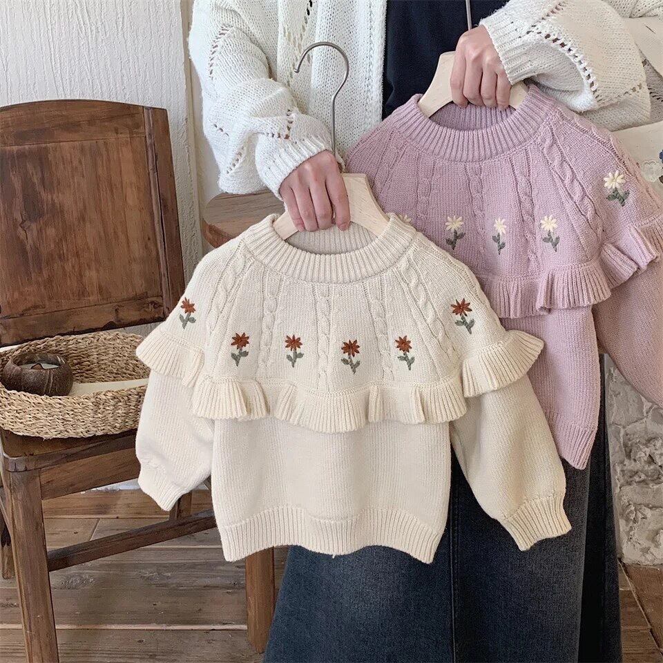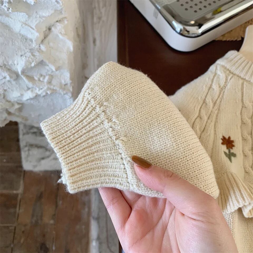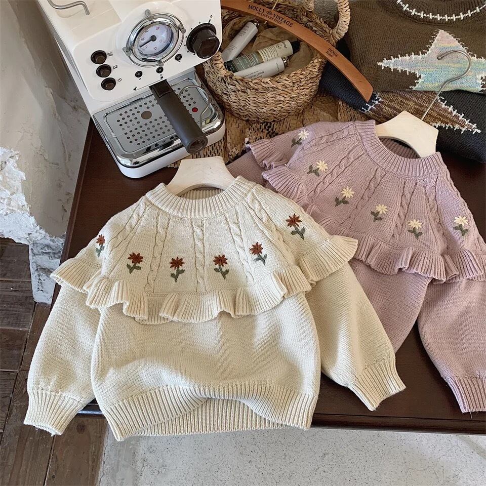 お花刺繍フリルニット