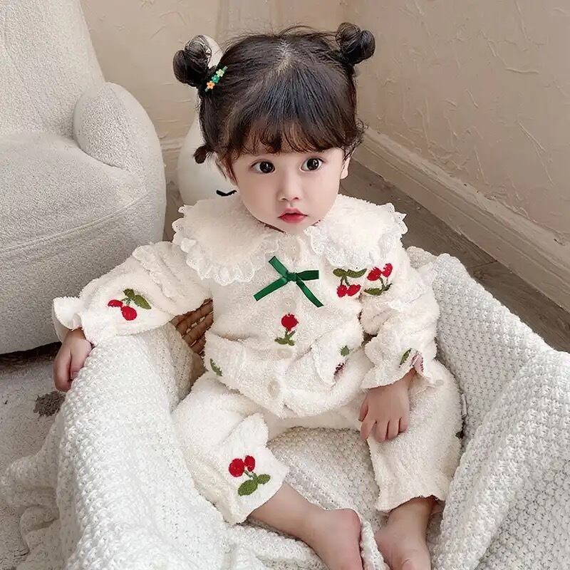 ふわふわさくらんぼロンパース