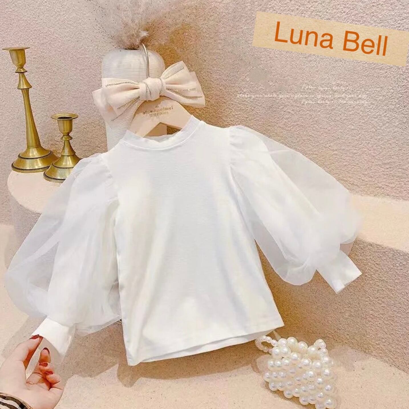 チュールパフスリーブブラウス