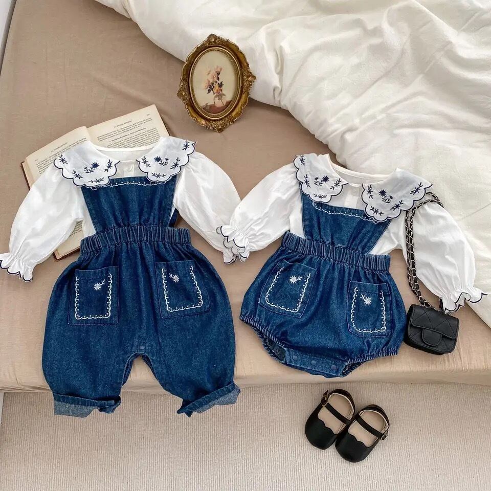 【姉妹お揃い】刺繍ボディスーツ・刺繍サロペット