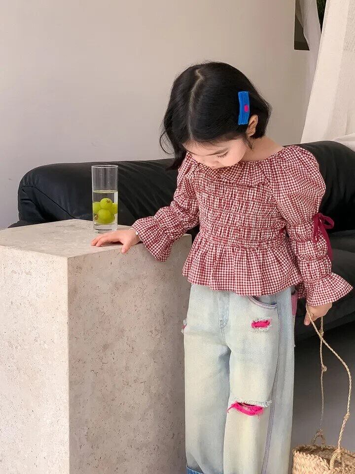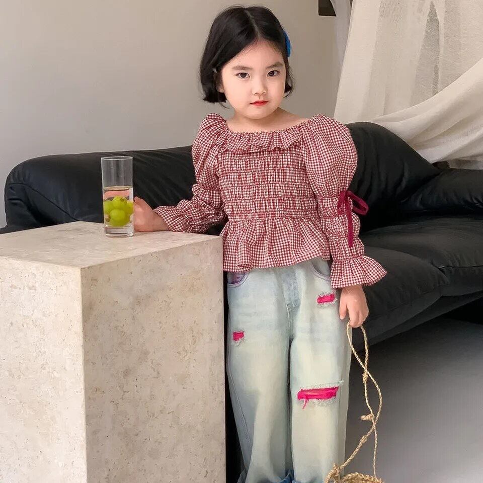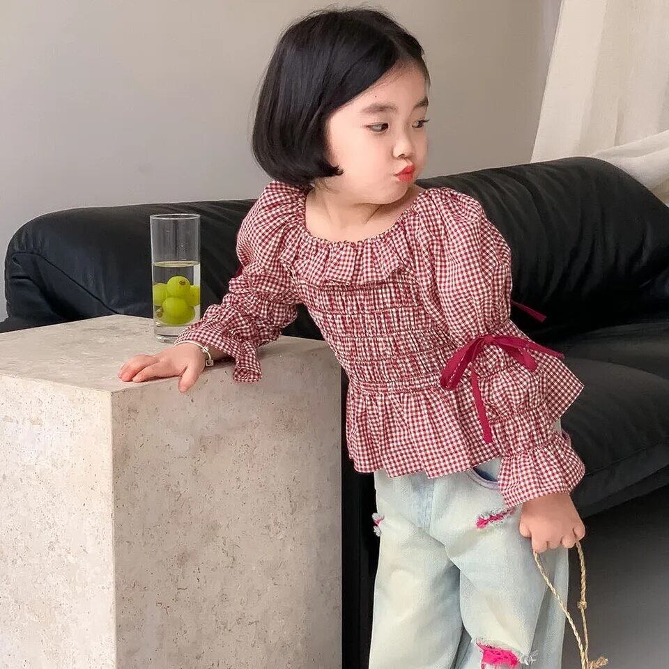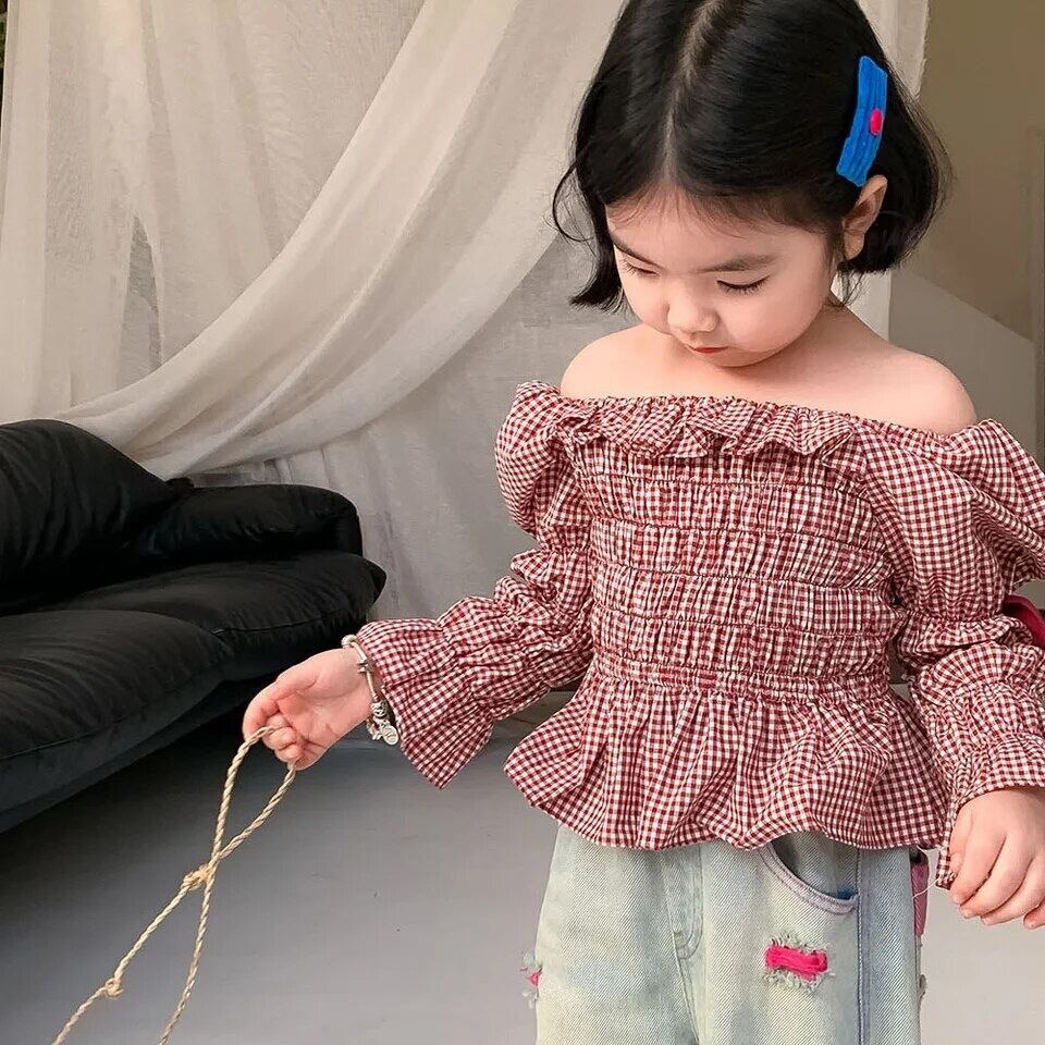 チェックオフショルダー