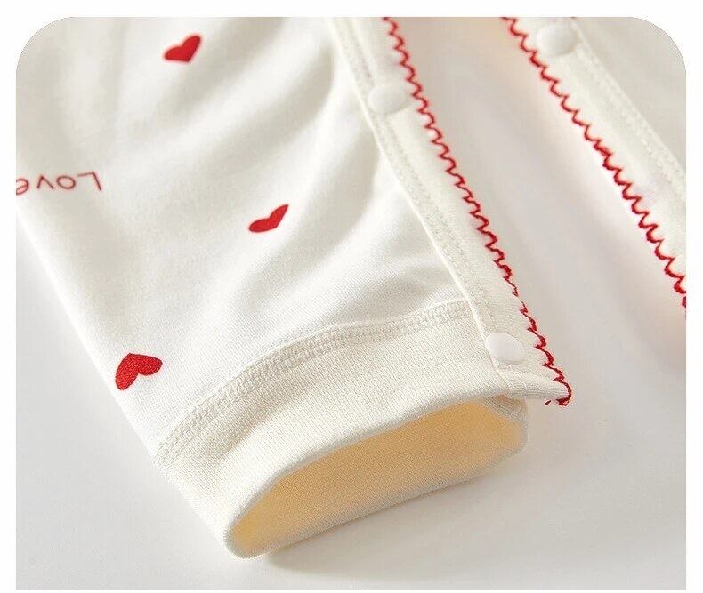 綿100% ハート柄長袖ロンパース