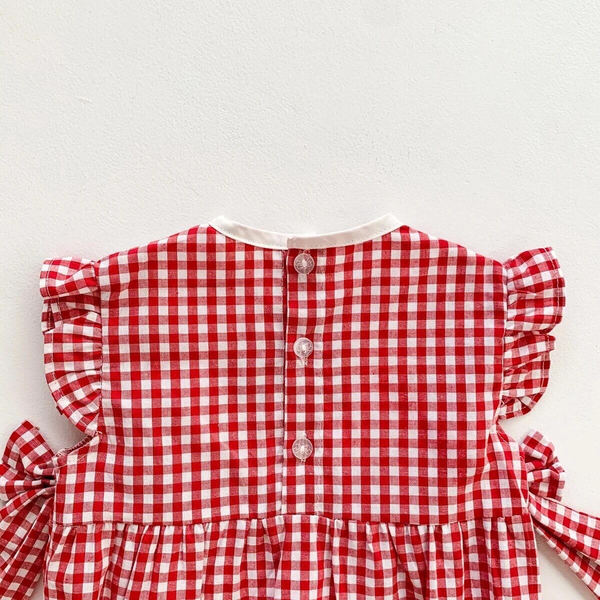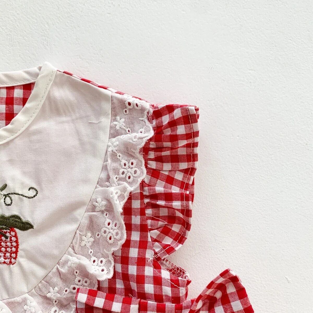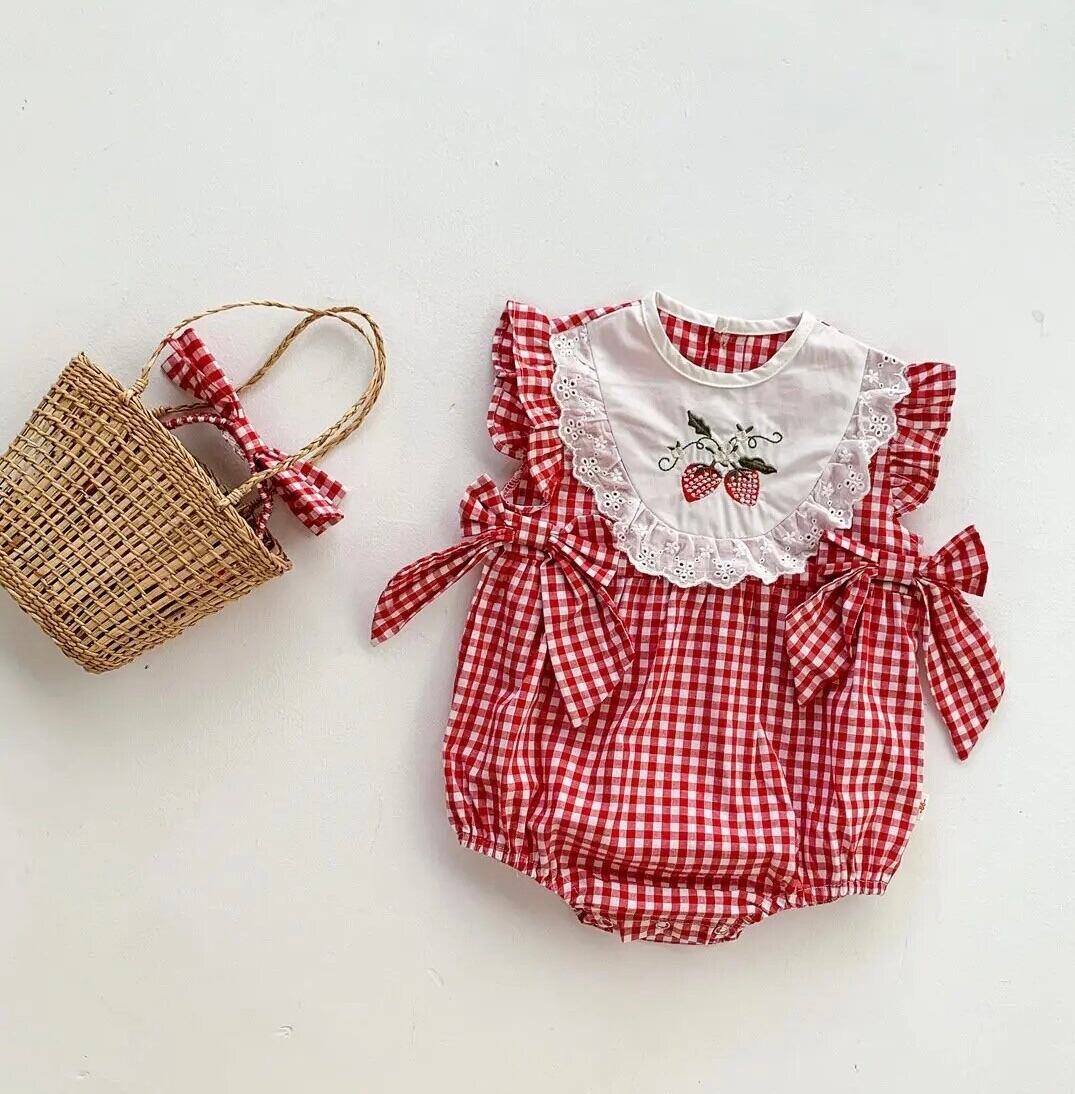 ギンガムいちごロンパース