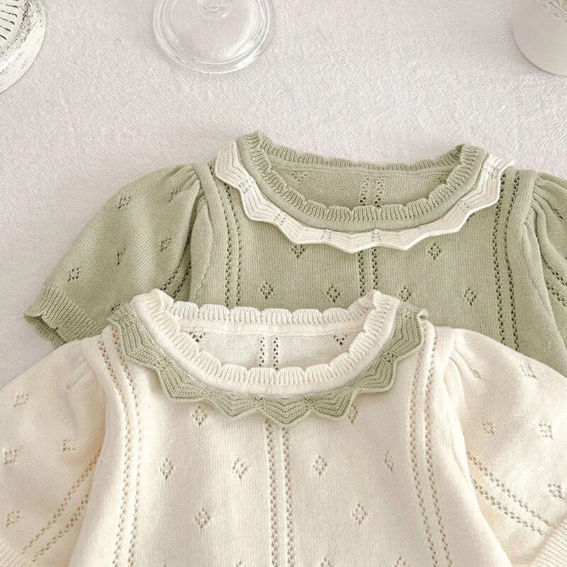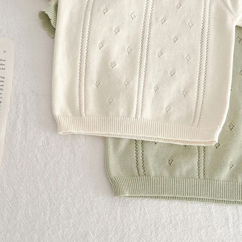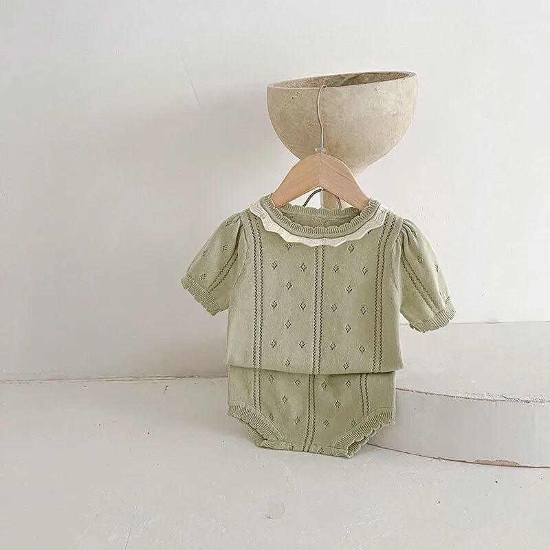 ベビー透かしニット半袖セットアップ