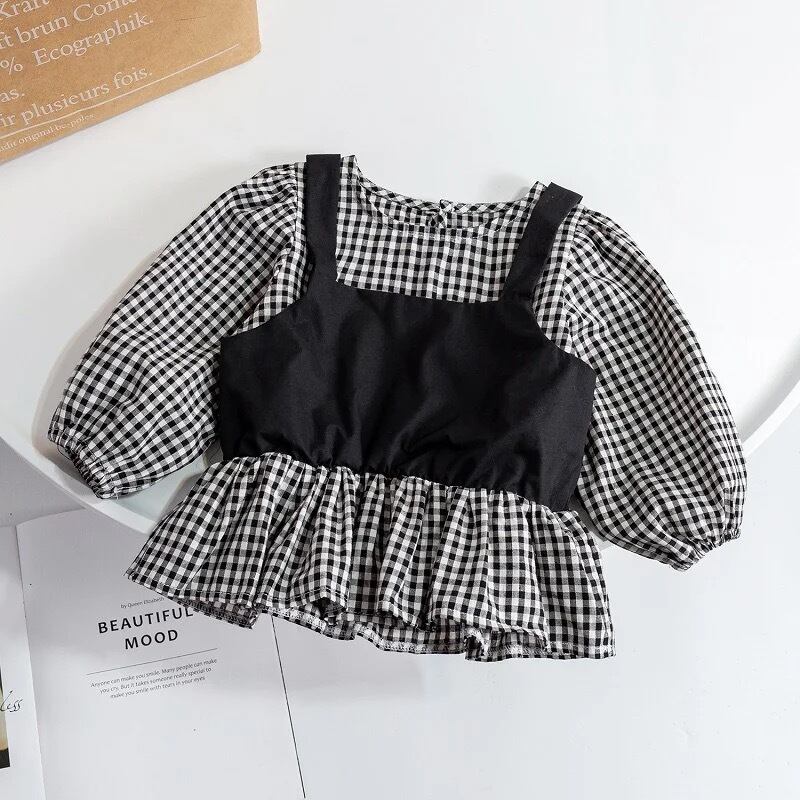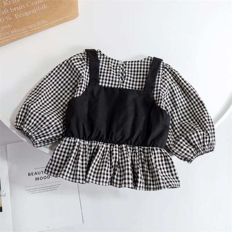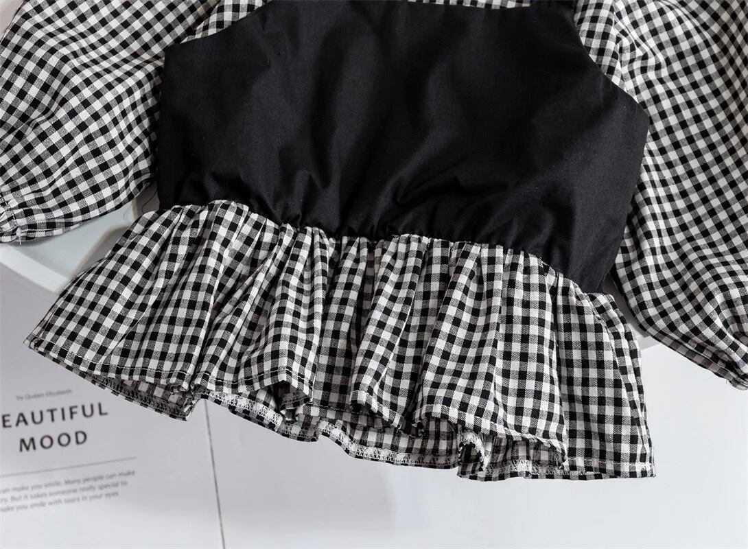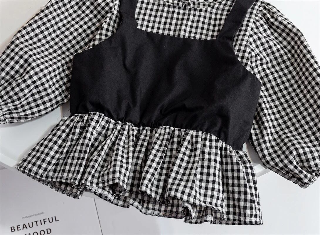 ビスチェドッキングギンガムブラウス