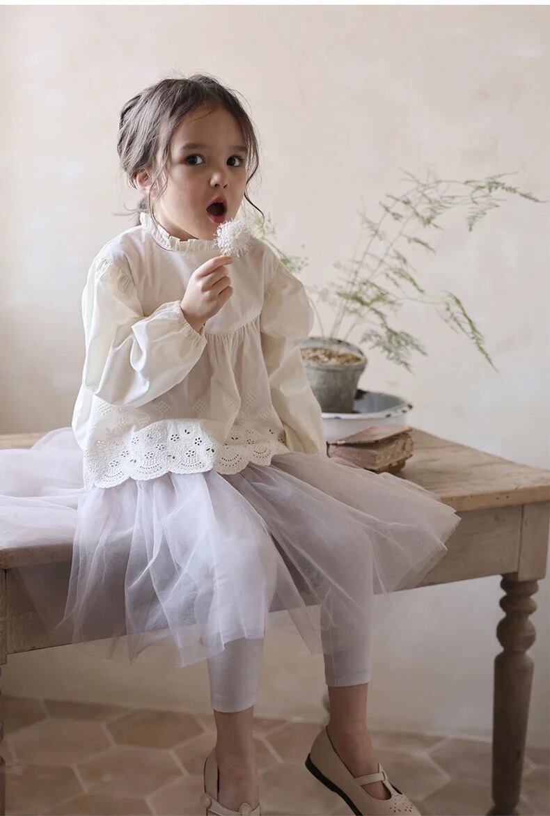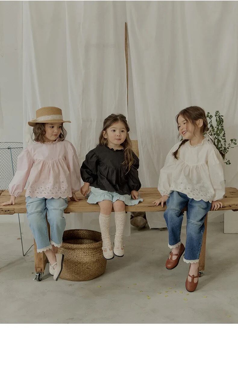 スカラップ長袖ブラウス
