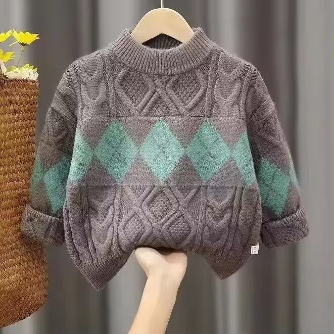 クルーネックアーガイルニット